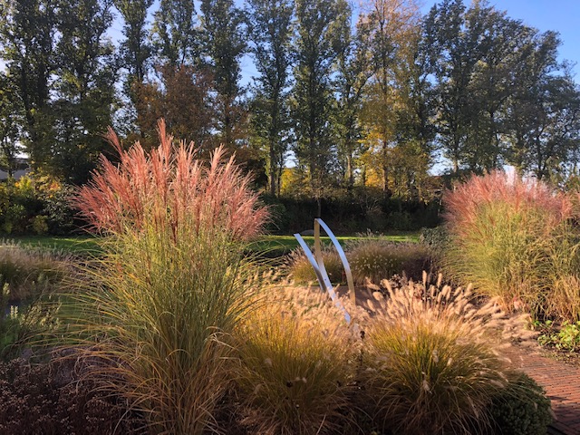 Naast het trottoir aan de voorzijde liggen langs de hele straat plantperken van de gemeente, die er zo oninteressant en zelfs verwaarloosd uitzagen dat wij in overleg met de gemeente voor mekaar kregen dat de hele zaak geruimd werd en nieuwe goeie grond aangebracht. Samen met de buren werden we in de gelegenheid gesteld om nieuwe beplanting uit te zoeken, die te planten en ook verder te onderhouden. Een prachtige ‘deal’. We vroegen Bertwin een ontwerp te maken met door hem te kiezen planten, die wij vervolgens gingen bestellen bij een tuincentrum. De planten werden bij ons afgeleverd in november 2023 en de rekening ging naar de gemeente. De planten gingen de nieuwe grond in, en in het hierop volgende voorjaar zien we hoe ze allemaal gaan uitgroeien, op één soort na, die geen wortels blijkt te ontwikkelen en waarvoor het tuincentrum nieuwe levert. Het geheel ziet er prachtig uit en we zijn erg benieuwd naar het straks ‘volwassen’ resultaat van het speelse ontwerp van Bertwin.